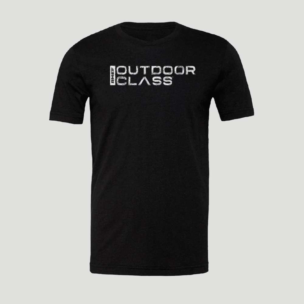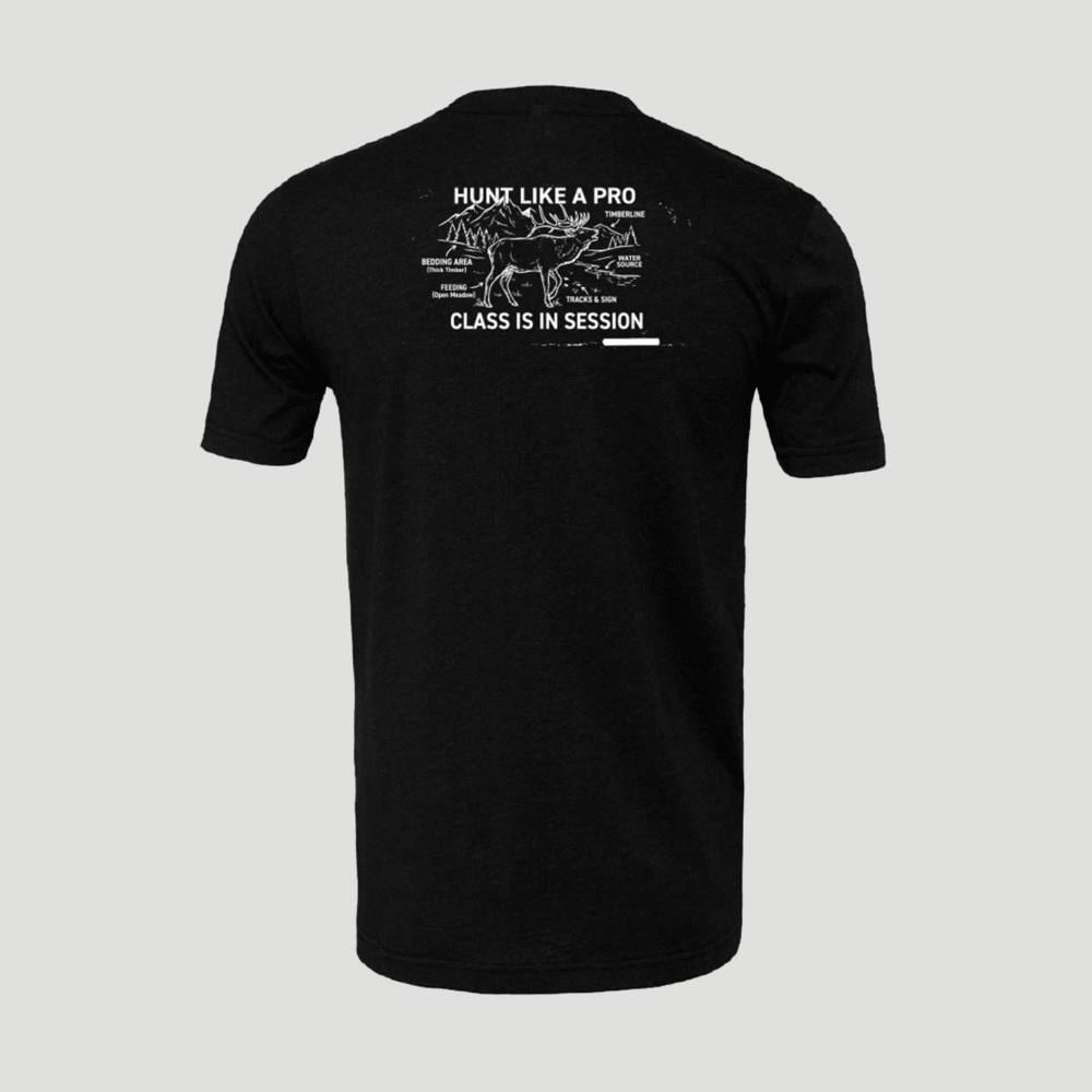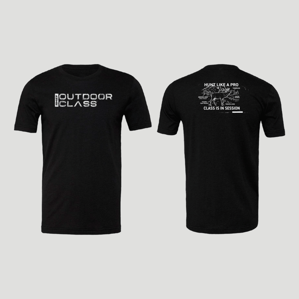 Bring the outdoors to the classroom with this OutdoorClass tee, featuring a unique chalk-style illustration of a bull elk on the back. Designed to resemble a hand-drawn classroom sketch, this tee blends rugged outdoor spirit with a creative twist—perfect for everyday wear on or off the trail.